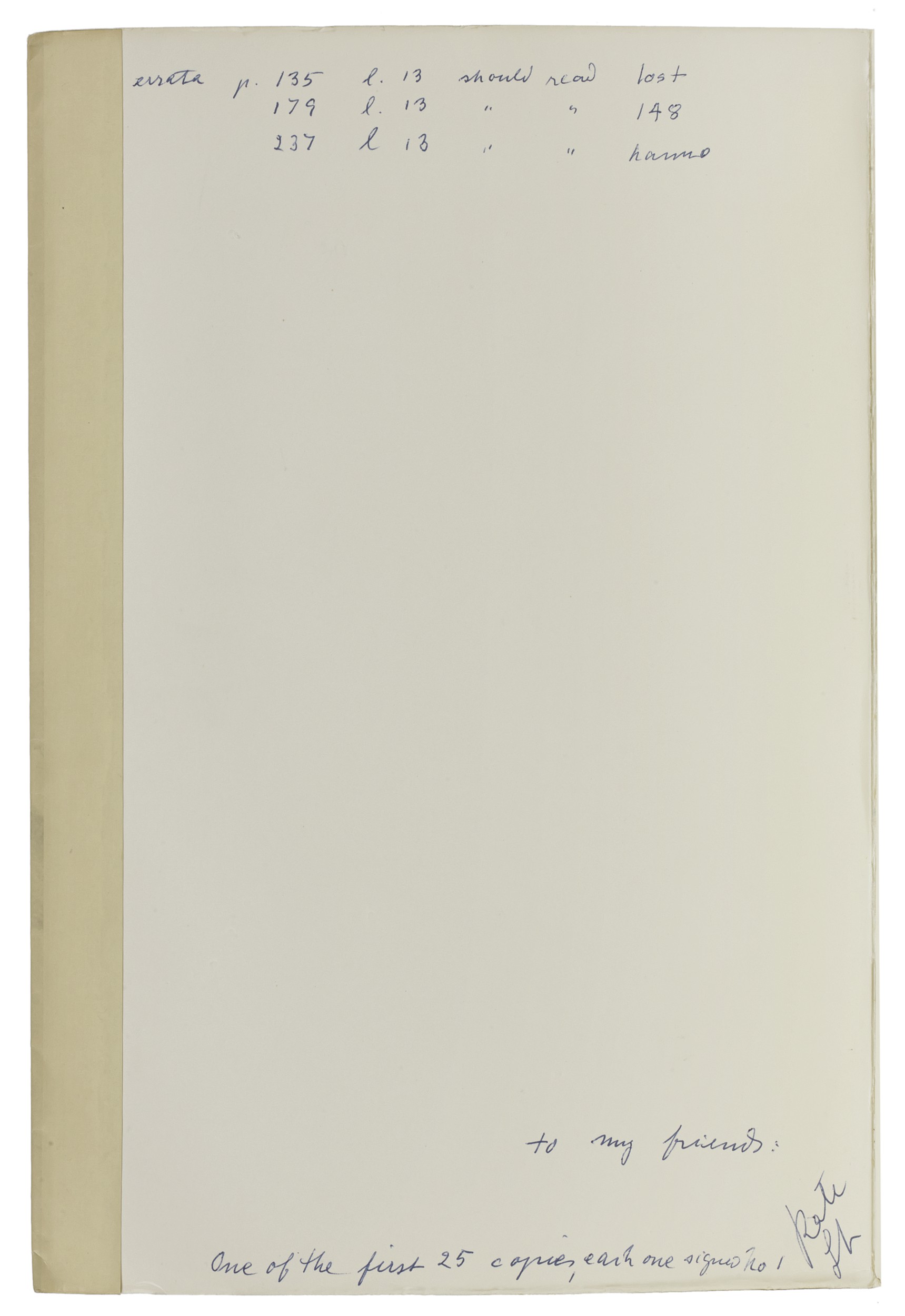 (25.5 cm), 243 pp., illustrations. Publisher’s printed wrappers. - The bibliography (62 editions) is preceded by an account of the original manuscript attributed to Leonardo’s pupil, Francesco Melzi, and of more than thirty manuscript copies, all previous to the first edition printed in 1651. The printed editions are then related to their manuscript sources, and to each other; a number of “ghosts” appearing in Verga’s Bibliografia Vinciana (1931) are exorcised. ¶ Author’s presentation copy, inscribed by Steinitz “To my friends | One of the first 25 copies, each one signed no. 1” and a list of errata also in her hand. Loosely inserted are two copies of the publisher’s prospectus; and an offprint of Kate Steinitz, “Bibliography never ends…” from Raccolta Vinciana, volume 18 (1980), pp.97-111.