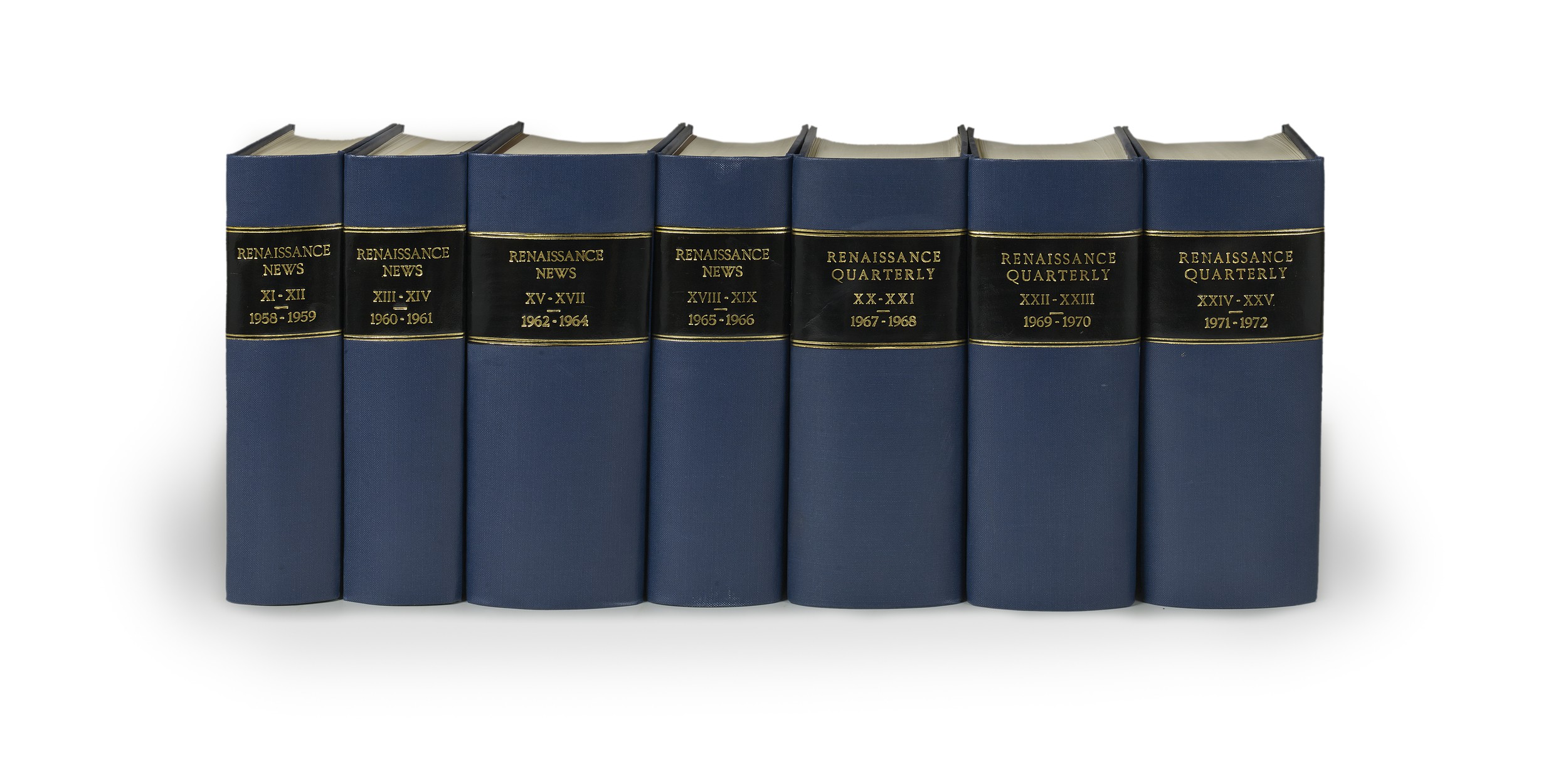 Studies in the Renaissance (volumes I-XXI, 1954-1974) § Renaissance News (volumes XI-XIX, 1958-1966) § Renaissance Quarterly (volumes XX-LXII, 1967-2009)