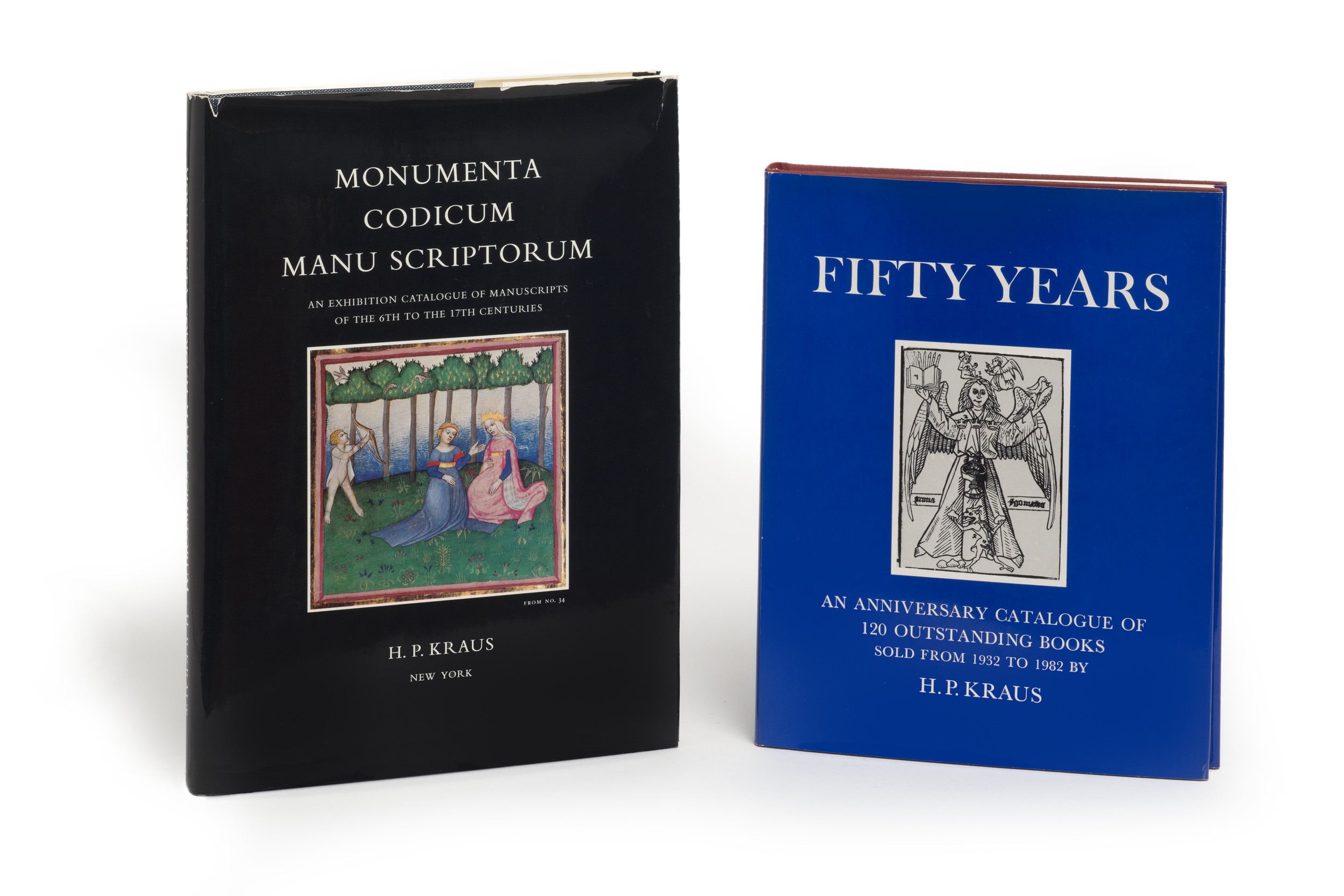 (27 cm), 106 pp., [4] p. of colour plates (pls.I-IV), black & white text illustrations. 200 items; priced. Publisher’s printed wrappers. - Includes “one major piece, the unique Wynkyn de Worde Proprytees and medicynes of horses, ingeniously back-dated from ‘c. 1525’ to 1497-8 by Christie’s at the Fitzwilliam sale, where Kraus out-bid the British Library” (from a notice in The Book Collector, Winter 2002, pp.537-538). After a sojourn in New York it was acquired by the British Library, which celebrated the purchase on 28 June 2004 with a lecture by Professor George Keiser of Kansas State University followed by a reception. Cf. Margaret Lane Ford, “A new addition to the corpus of English incunabula: Wynkyn de Worde’s ‘Proprytees & Medicynes of Hors’ (c. 1497-98)” in The Library, volume 7 (2001), pp.3-9.